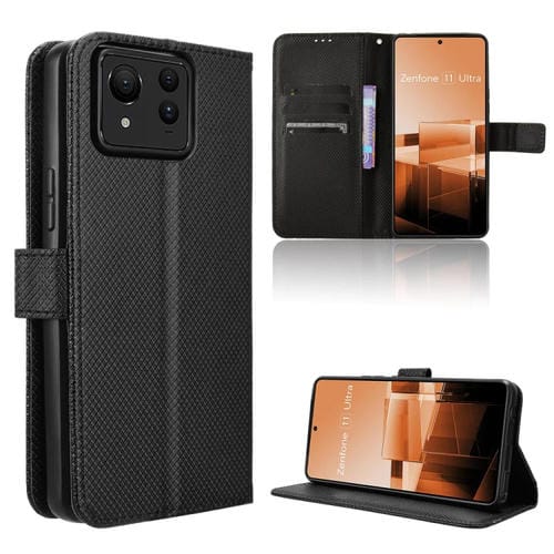 Funda de Cuero para Asus Zenfone 11 Ultra con Textura Diamond (Negro)