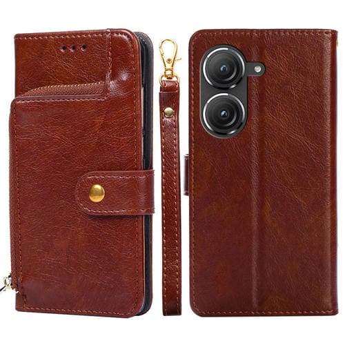 Funda de Cuero con Cremallera para Asus Zenfone 9 Teléfono (Marrón)
