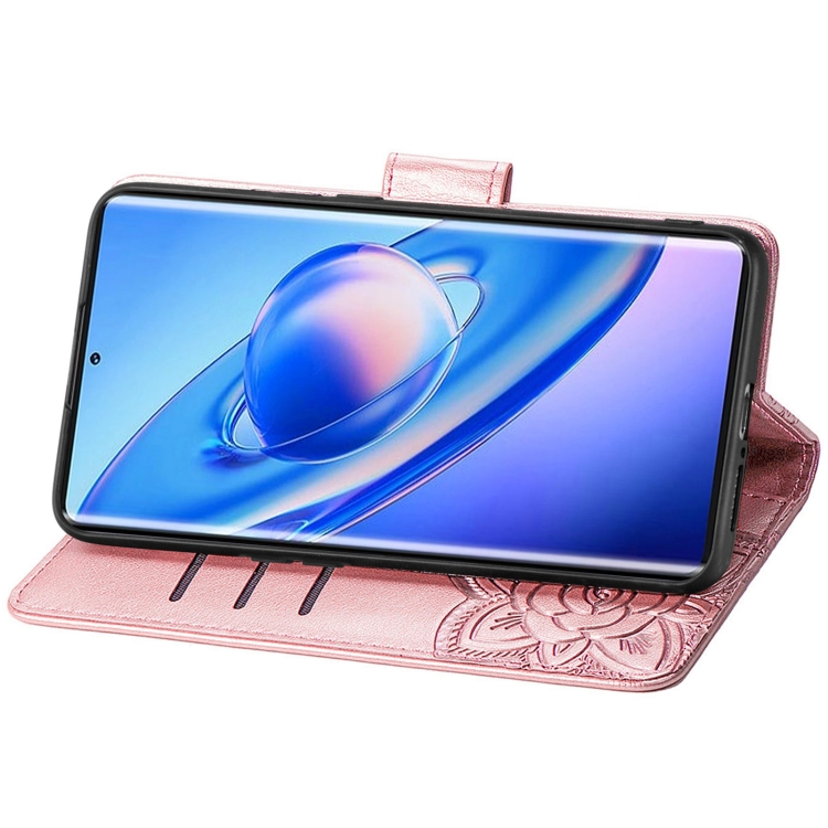 Funda de Cuero para BlackView A200 Pro Butterfly Love Flower en Relieve (Oro Rosa)