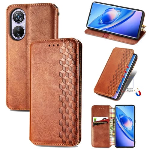 Funda de Cuero Magnético Prensado para BlackView A200 Pro Cubic Grid (Marrón)