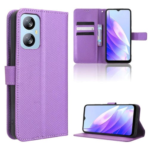 Funda de Cuero para BlackView A52 con Textura de Diamante (Púrpura)