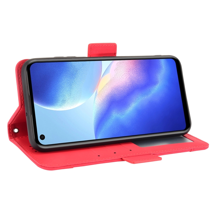 Funda de Cuero para BlackView A90 con Soporte, Ranuras para Tarjetas y Marco de Fotos (Rojo)