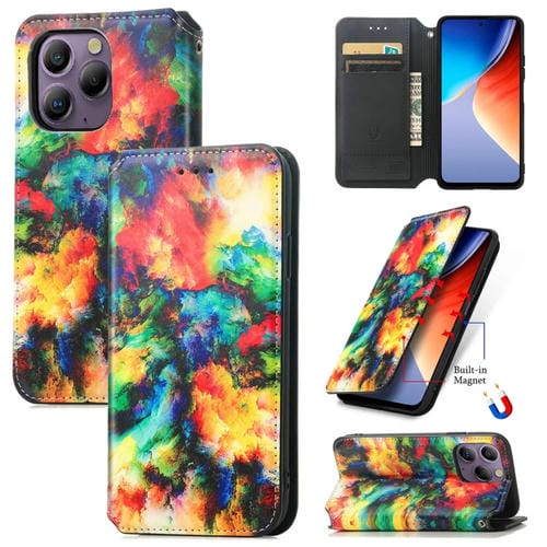 Funda de Cuero Magnética Caseneo para BlackView A96 (Nube Colorida)