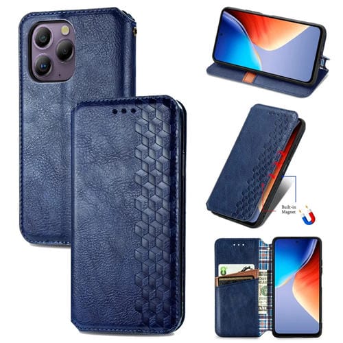 Funda de Cuero Magnético Prensado para BlackView A96 Cubic Grid (Azul)