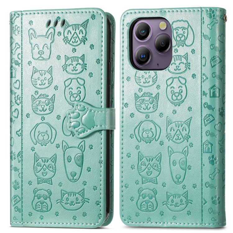 Funda de Cuero para BlackView A96 con Relieve Perros y Gatos (Verde)