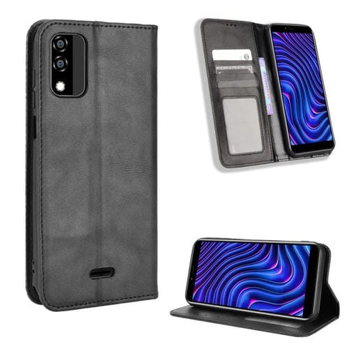 Funda de Cuero para Blu C5 Max 2022 con Hebilla Magnética y Textura Retro (Negro)