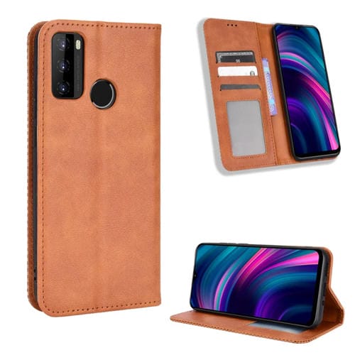 Funda para Blu G51 Plus con Hebilla Magnética y Caja de Cuero Textura Retro (Marrón)