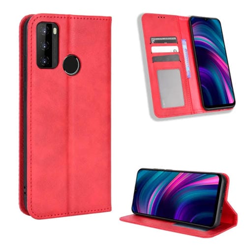 Funda para Blu G51 Plus Hebilla Magnética Cuero Textura Retro (Rojo)