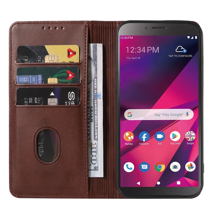 Funda de Cuero para Blu View 1 con Cierre Magnético (Marrón)