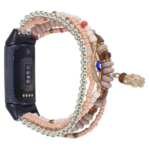 Correa para Fitbit Charge 5 Eye Bead Chain Watch Band (Café Ligero)