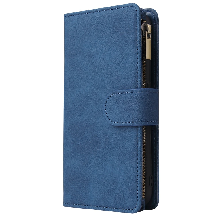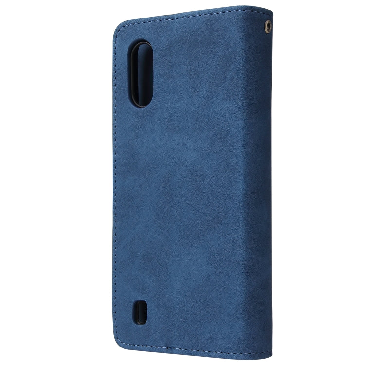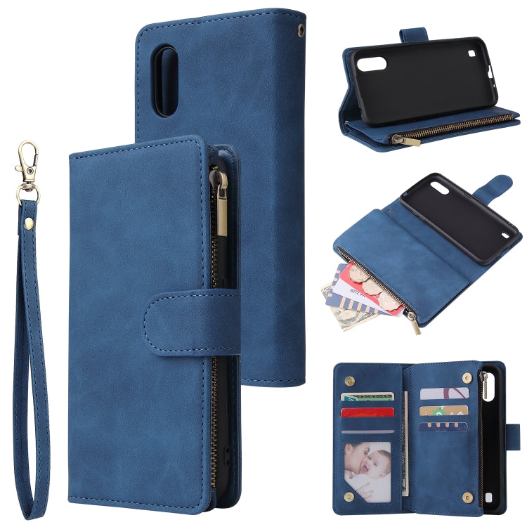 Estuche de Cuero para Galaxy A01 con Tapa Horizontal Multifuncional Ranura Tarjeta Soporte Billetera Cremallera Marco Fotos (Azul)