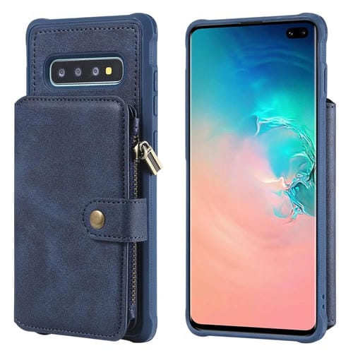 Estuche Protector Galaxy S10 Plus con Cremallera Ranuras para Tarjetas Soporte y Billetera (Azul)