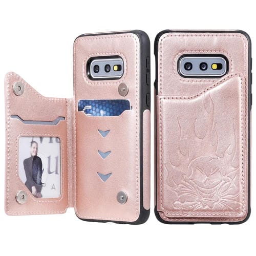 Estuche Protector para Galaxy S10E Skull Head a Prueba de Golpes con Patrón En Relieve Soporte Ranuras para Tarjetas y Billetera (Oro Rosa)