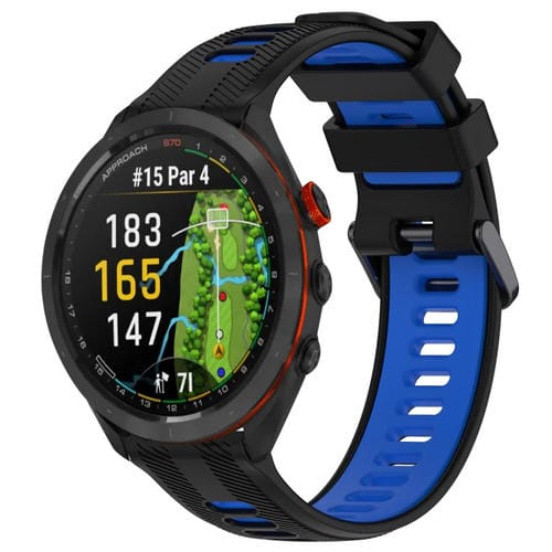 Correa de silicona para Garmin Approach S70 47mm sports dos colores (Negro + Azul)