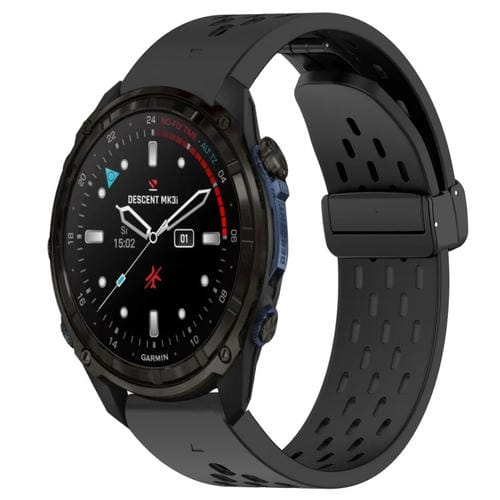 Correa de Reloj Silicona Garmin Descent Mk3I 43mm 20mm con Orificio para Hebilla Plegable (Negro)