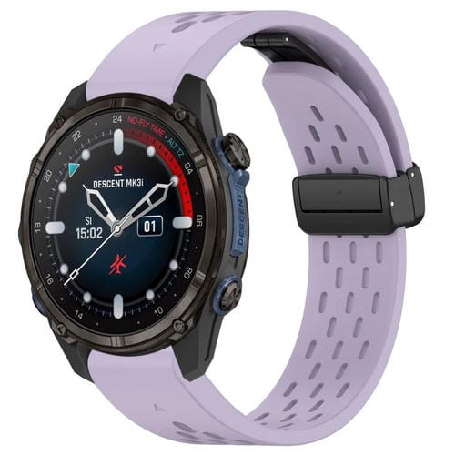 Correa de Reloj Silicona para Garmin Descent Mk3I 43mm 20mm Hebilla Plegable Magnética (Púrpura)