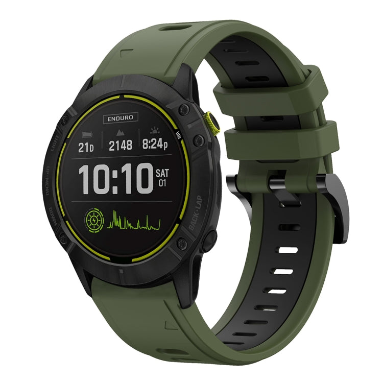Banda de Reloj de Silicona Deportiva para Garmin Enduro 26mm (Verde Militar + Negro)