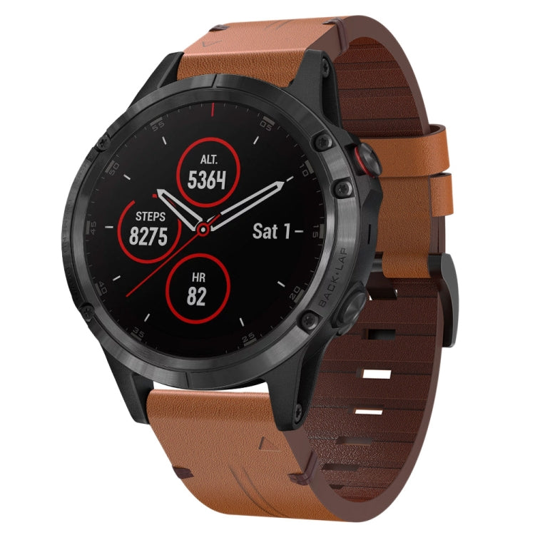 Correa de Reloj Garmin Fenix 5 Plus de Cuero 22mm con Hebilla de Acero (Marrón)