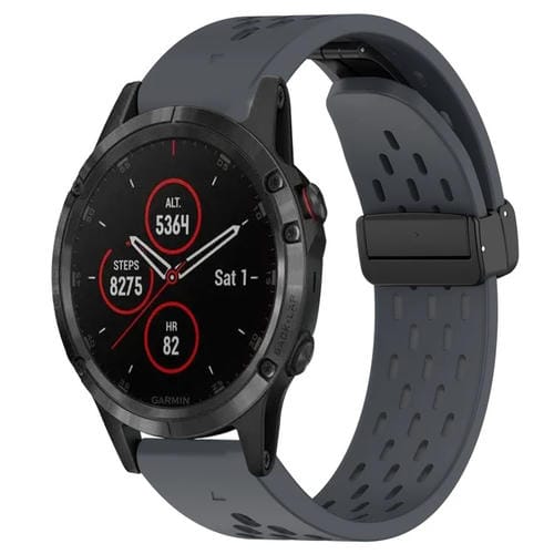 Correa de Reloj Silicona para Garmin Fenix 5 Plus con Orificio y Hebilla Plegable 22mm (Gris Oscuro)