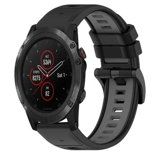 Correa para Garmin Fenix 5X Plus 26mm silicona deportiva bicolor (Negro + Gris)