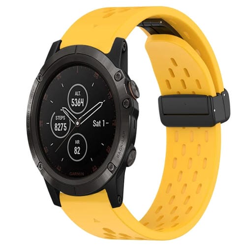 Correa de Silicona para Garmin Fenix 5X Plus con Orificio y Hebilla Plegable 26mm (Amarillo)