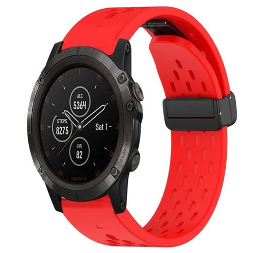 Correa de Silicona para Garmin Fenix 5X Plus con Orificio y Hebilla Plegable 26mm (Rojo)