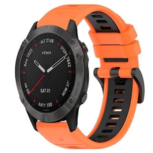 Correa para Garmin Fenix 6 Pro GPS 22mm Silicona Bicolor Naranja y Negro