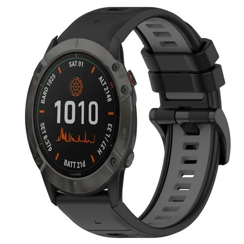 Correa de Silicona Deportiva para Garmin Fenix 6X Pro 26mm (Negro + Gris)