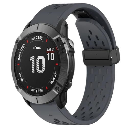 Correa de Silicona para Garmin Fenix 6X Pro con Orificio y Hebilla Plegable 26mm (Gris Oscuro)