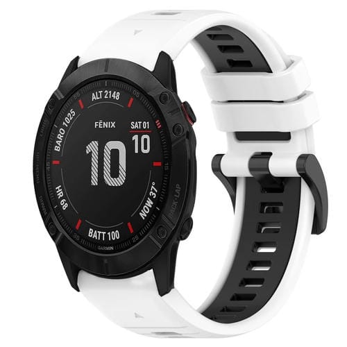 Correa de Silicona para Garmin Fenix 6X Sapphire 26mm Sports Dos Colores (Blanco + Negro)