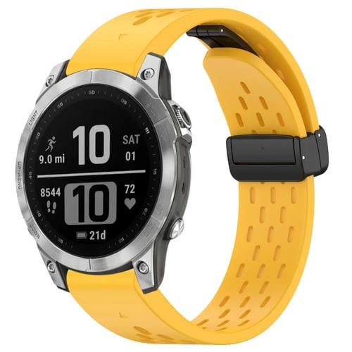 Correa de Silicona para Garmin Fenix 7 y Fenix 7 Pro con Hebilla Plegable Magnética y Orificios de 22mm (Amarillo)