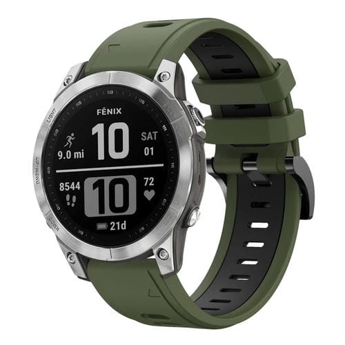 Correa de silicona deportiva para Garmin Fenix 7 Pro 51mm (Verde Militar + Negro)