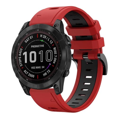 Banda de Reloj Silicona para Garmin Fenix 7 Sapphire Solar 22mm Deportiva Dos Colores (Rojo + Negro)