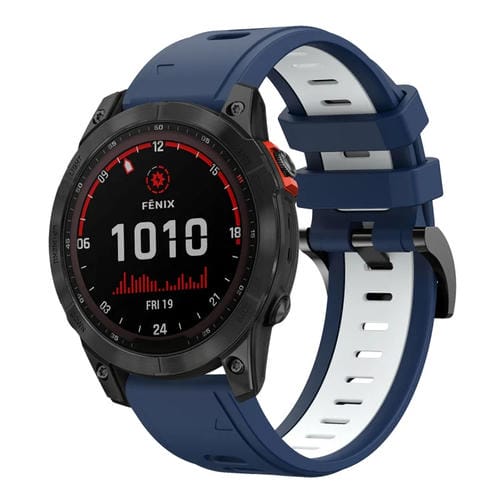 Banda de Reloj Silicona Deportiva para Garmin Fenix 7 Solar 22mm (Azul Medianoche + Blanco)
