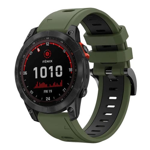 Banda de Reloj Silicona Deportiva para Garmin Fenix 7 Solar 22mm (Verde Militar + Negro)