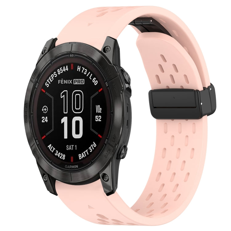 Correa de Reloj de Silicona para Garmin Fenix 7X 26mm con Orificio y Hebilla Plegable (Rosa)
