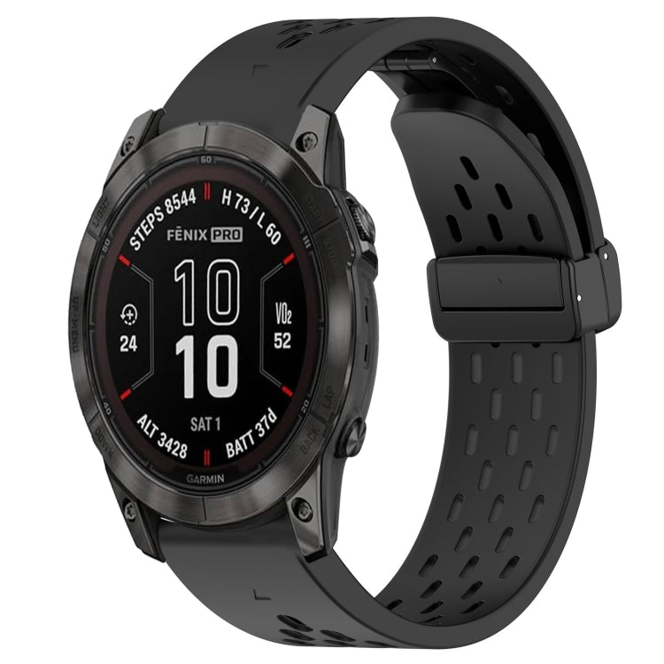 Correa de Reloj de Silicona para Garmin Fenix 7X Pro 51mm 26mm con Hebilla Plegable (Negro)
