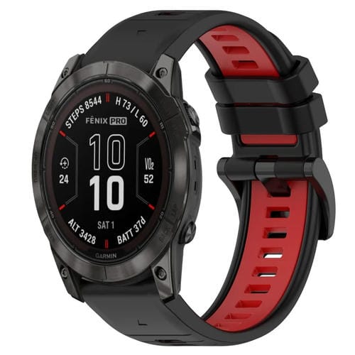 Correa de Silicona para Garmin Fenix 7X Pro 51mm 26mm Sports Bicolor (Negro + Rojo)
