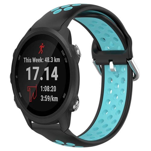Banda de Reloj Silicona Deportiva para Garmin Forerunner 245 Music 20mm (Negro + Azul)