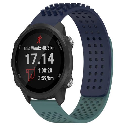 Correa de Silicona para Garmin Forerunner 245 Music con Puntos 3D Transpirables y Orificios de 20mm (Azul Medianoche + Verde Oliva)