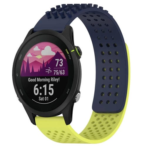 Correa de Silicona para Garmin Forerunner 255 con Puntos 3D Transpirables y Orificios 22mm (Azul Medianoche + Verde Lima)