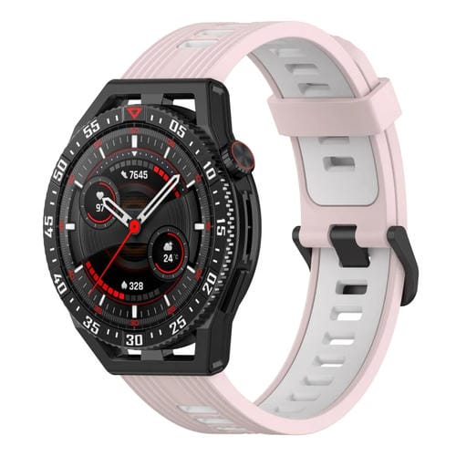Banda de Reloj Garmin Forerunner 255 Music 22mm Silicona Dos Colores Vertical (Rosa + Blanco)