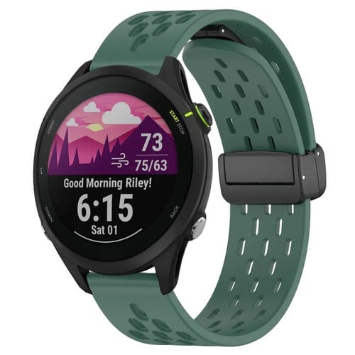 Correa de Silicona para Garmin Forerunner 255 Music con Cierre Magnético Plegable de 22mm (Verde Oscuro)