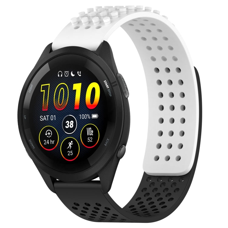 Correa de Reloj de Silicona para Garmin Forerunner 265 con Puntos 3D Transpirables y Orificios de 22mm (Blanco + Negro)