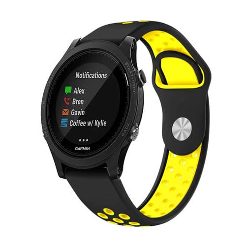 Banda de Reloj Garmin Forerunner 935 22mm Silicona Transpirable (Negro + Amarillo)