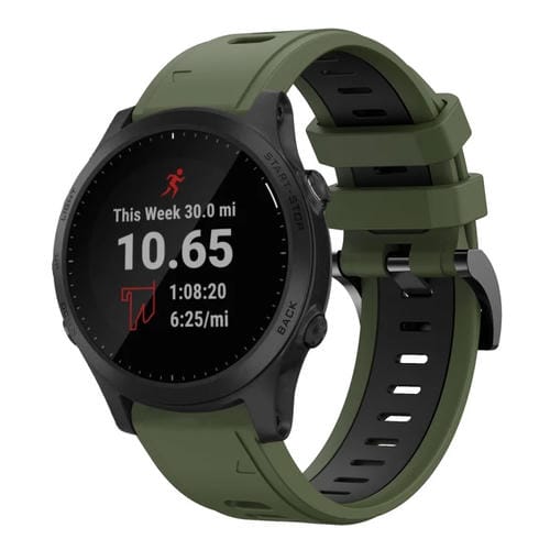Banda de Reloj Deportiva Garmin Forerunner 945 22mm Silicona Dos Colores (Verde Militar + Negro)