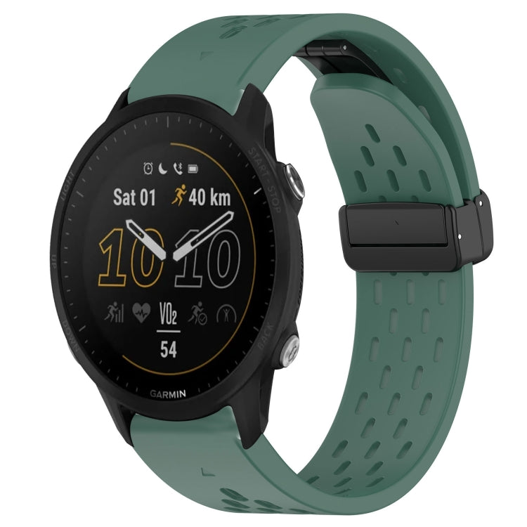 Correa de Reloj de Silicona para Garmin Forerunner 955 con Orificio y Hebilla Plegable de 22mm (Verde Oscuro)