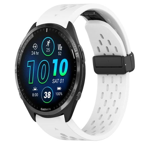 Correa de Reloj Silicona para Garmin Forerunner 965 con Orificio y Hebilla Plegable de 22mm (Blanco)