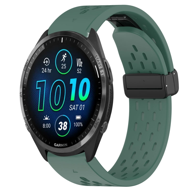 Correa de Reloj de Silicona Garmin Forerunner 965 con Orificio y Hebilla Plegable 22mm (Verde Oscuro)