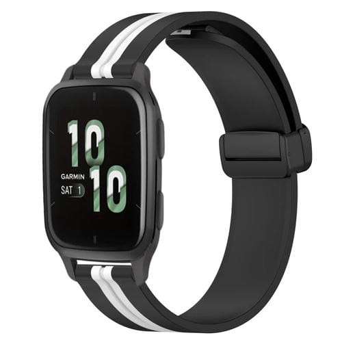 Correa de Silicona para Garmin Forerunner Sq2 20mm con Cierre Magnético Plegable (Negro + Blanco)